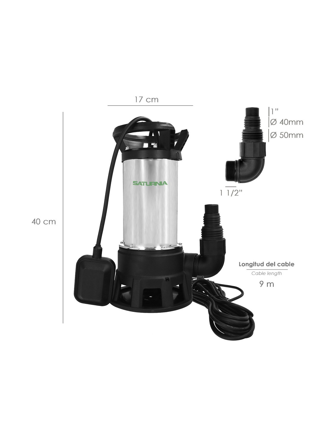 - Con flotador de activación del agua, permite que la bomba se active y desactive según el nivel del agua.