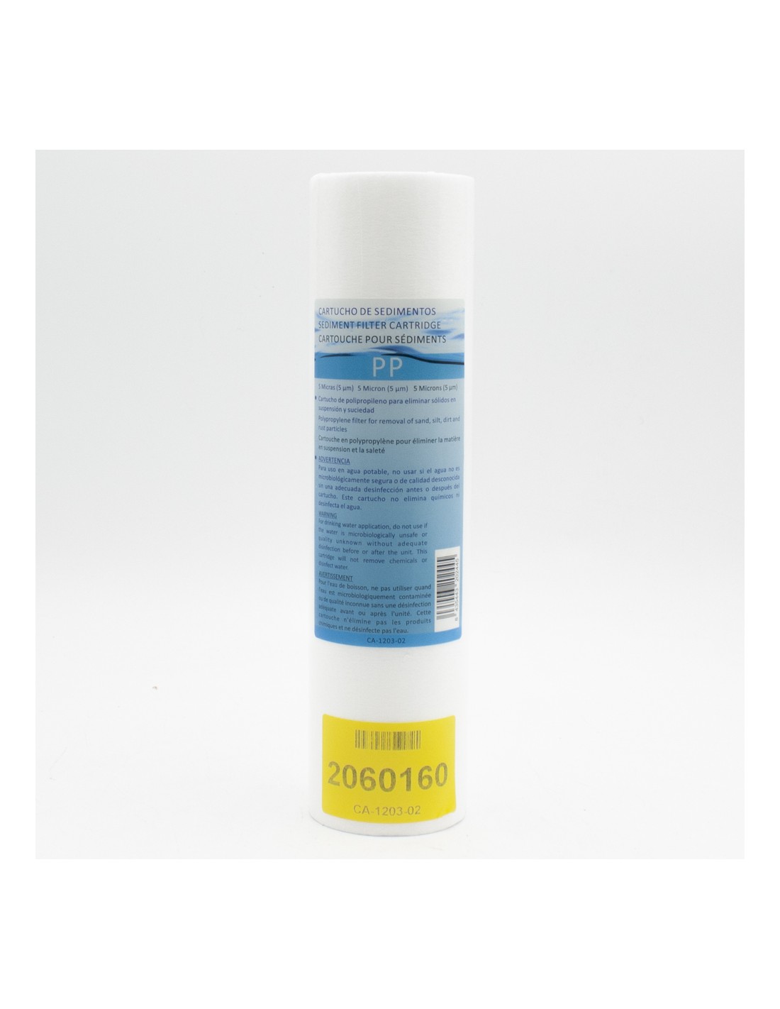 Cartucho fabricado en prolipropileno extrusionado.
