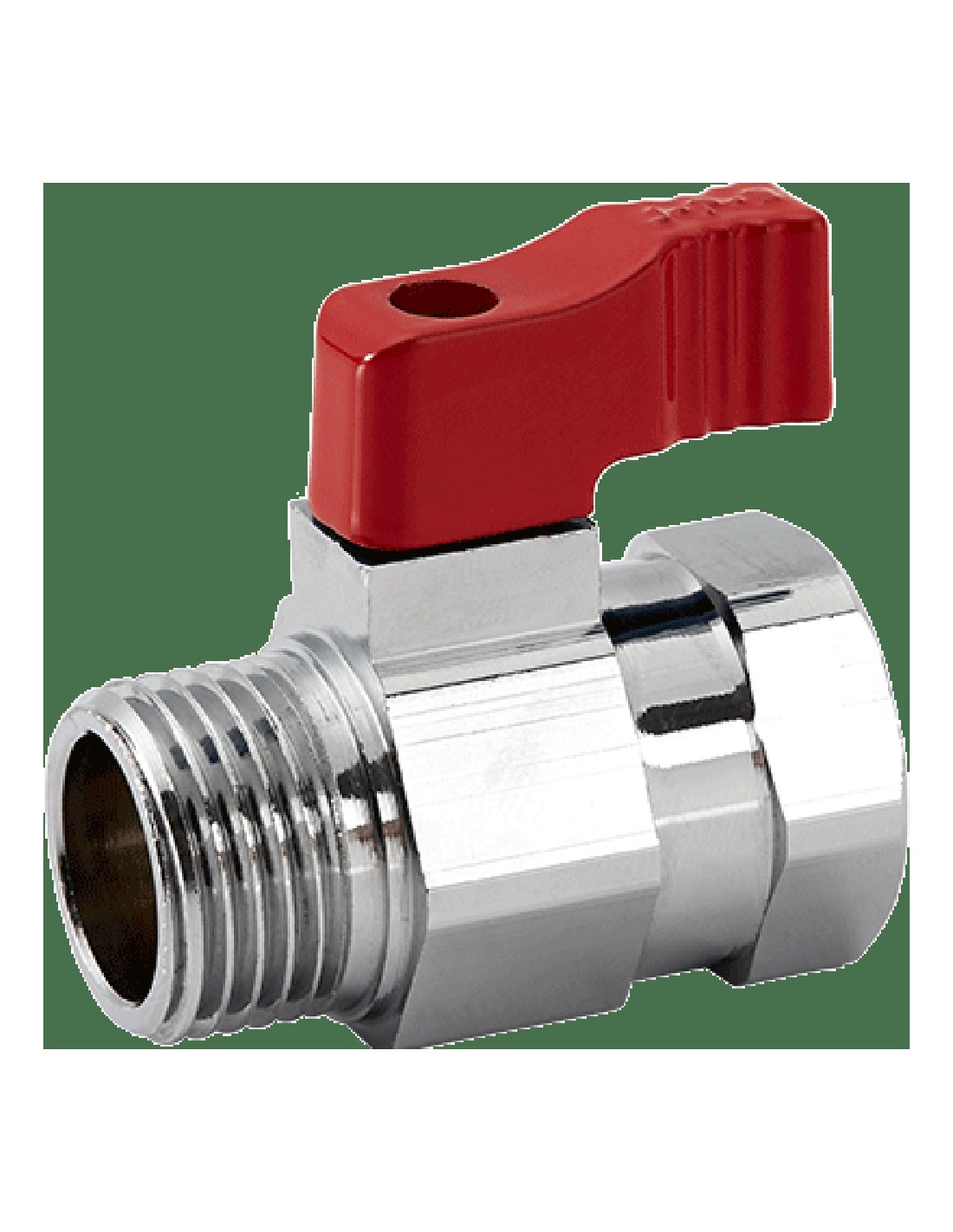 Fabricada en cuerpo latón según NORMA UNE EN-012165 con acabado niquelado. Válvula mini de bola con asiento de teflón (PTFE). Modelo M-H (macho-hembra) con roscas gas BSP según Norma ISO 228/1.