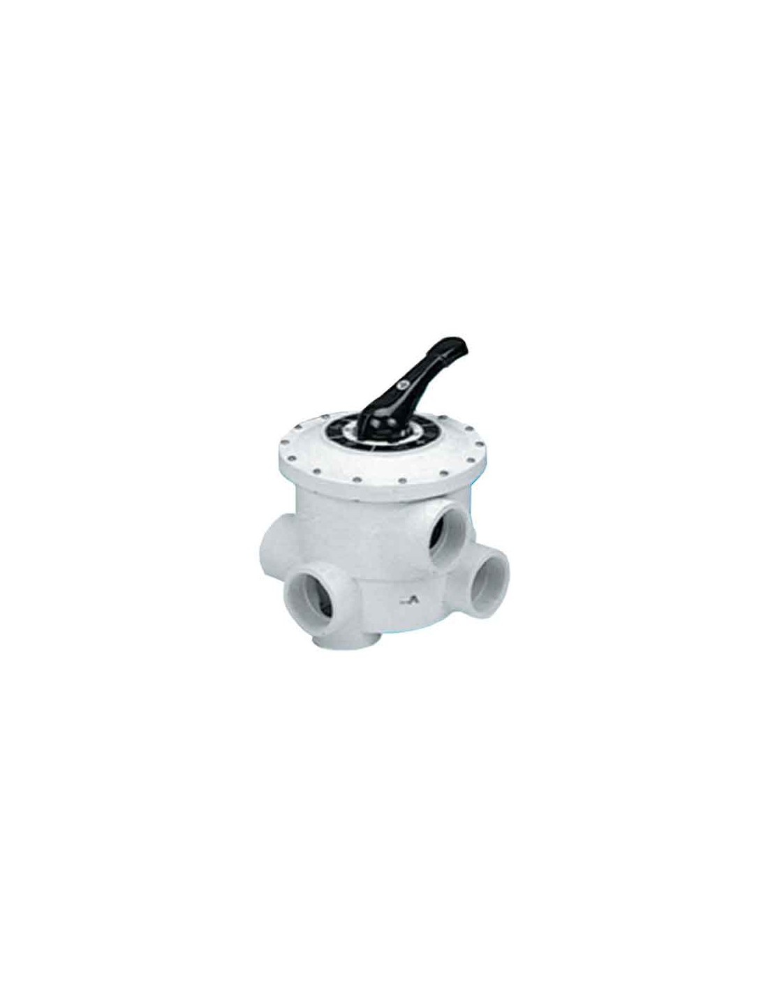 Valvula selectora 6 vias para realizar diversas funciones en un circuito hidraulico: filtracion, vaciado, cerrado, lavado, recirculacion y enjuague del filtro.
